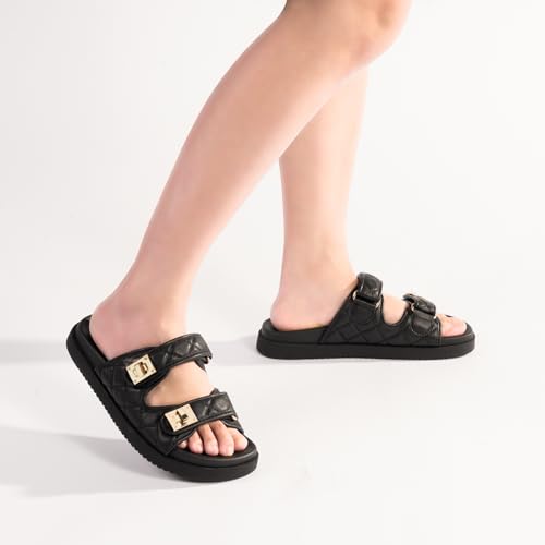 HOT ! FITORY Women's Flat Sandals Classic Adjustable Double Strap with Cushioned Footbed for Summer Size 6-11