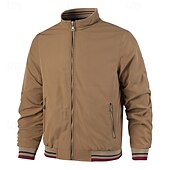 More information about Men's Lightweight Jacket Casual Jacket Vacation Daily Breathable Pocket Spring Fall Plain Fashion Classic Stand Collar Regular Black Khaki Army Green Jacket