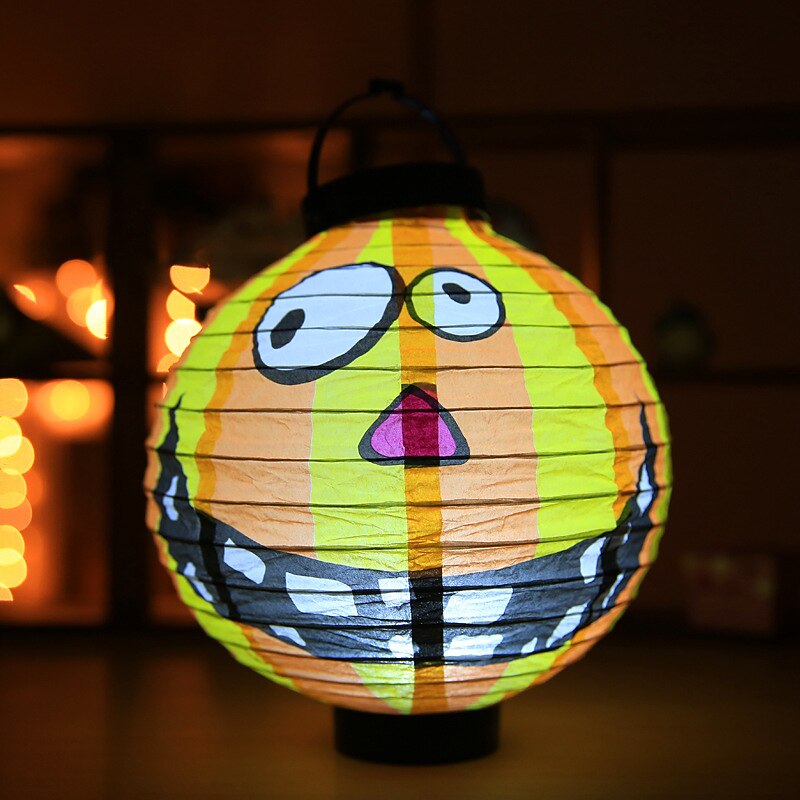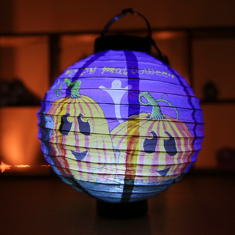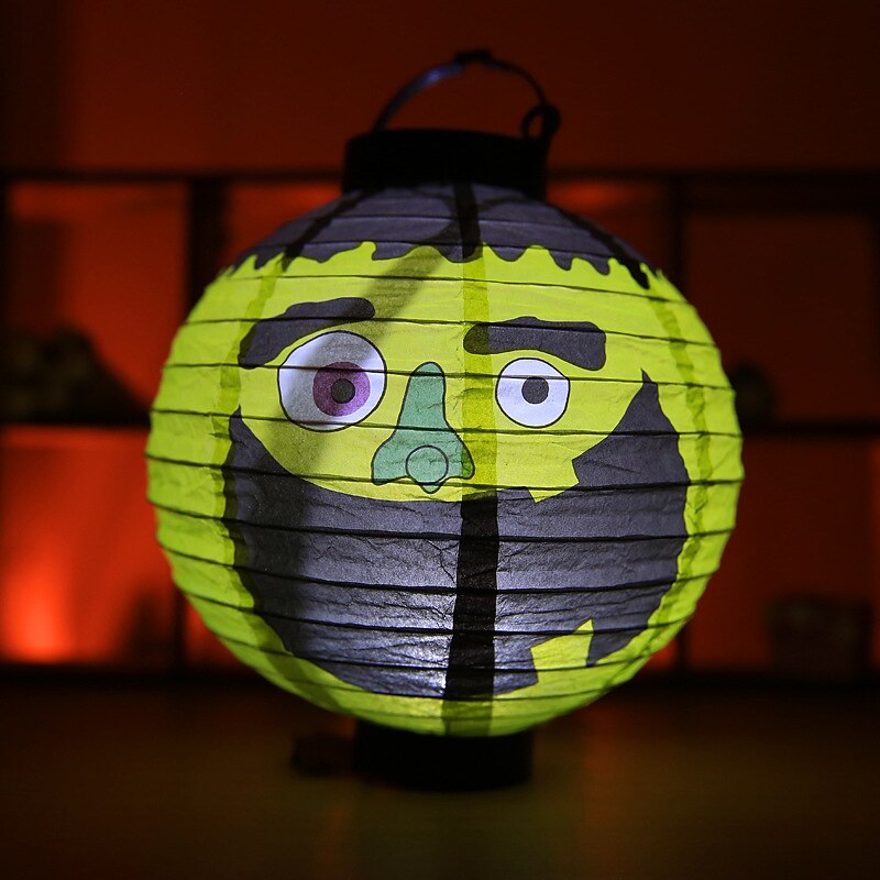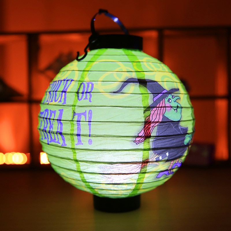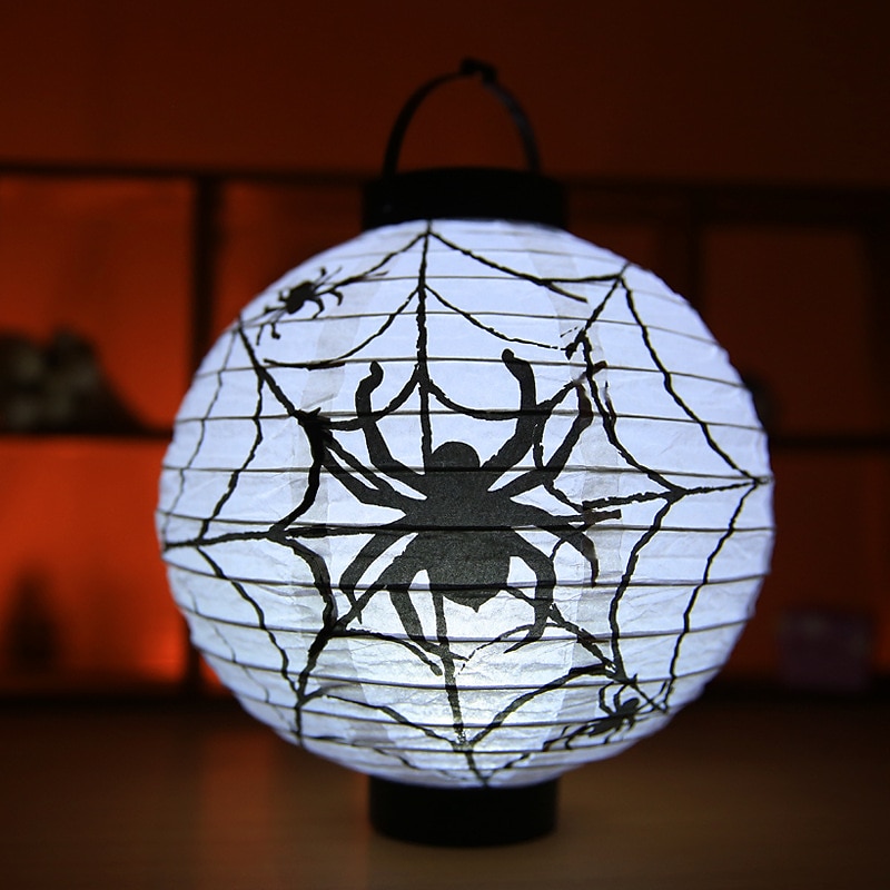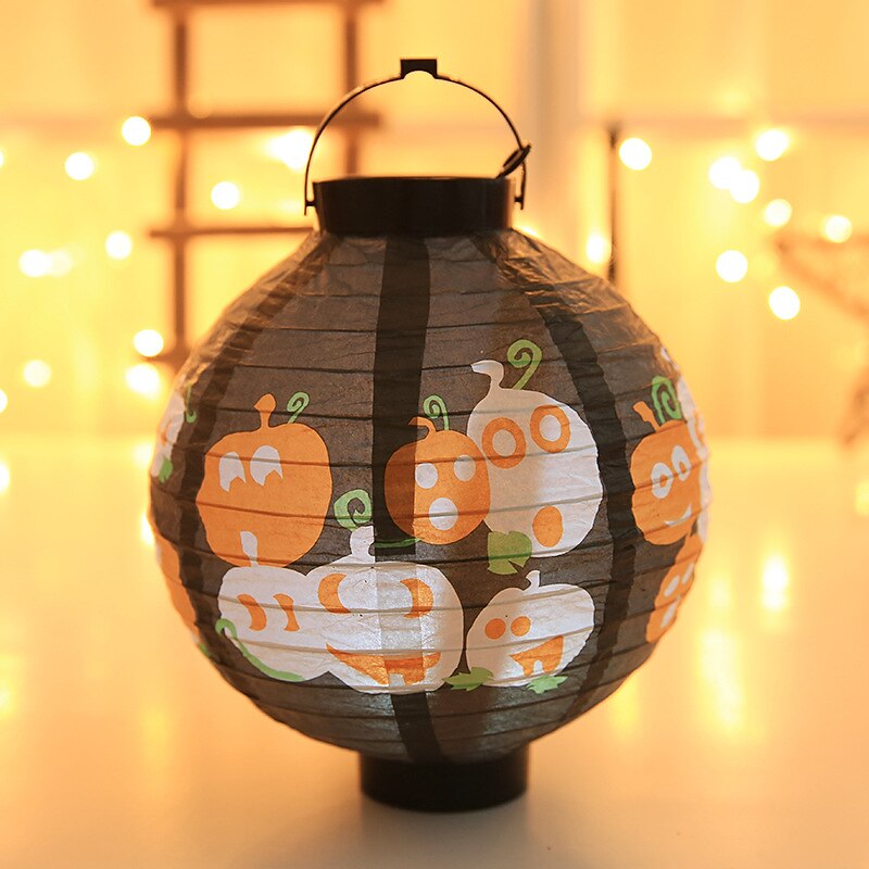 HOT ! Halloween Paper Lantern Pumpkin Bat Spider Skeleton Castle LED Lantern Light for Indoor Outdoor Halloween Party Decor