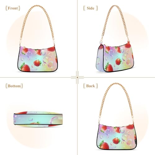 More information about Strawberry Bubbles Pastel Pink Tote Handbag Womens Colorful Shoulder Bag Evening Bags Purse Zipper Closure Chain Strap