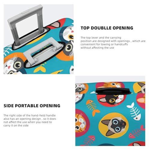 Cat and Fish Bones Print Luggage Cover Washable Elasticated Suitcase Covers TSA Approved Stylish Dust and Scratch Resistant Case Protector for Kids and Adults 3