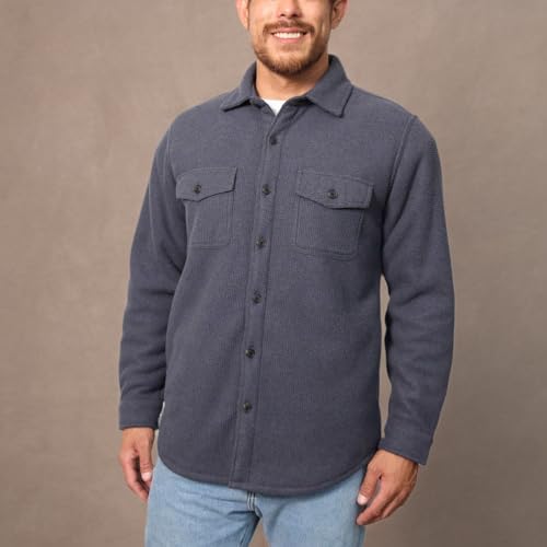 Freedom Foundry Men's Fleece Heavyweight Jackets Super Plush Sherpa Lined Jacket Shirt (Navy, Large) 4