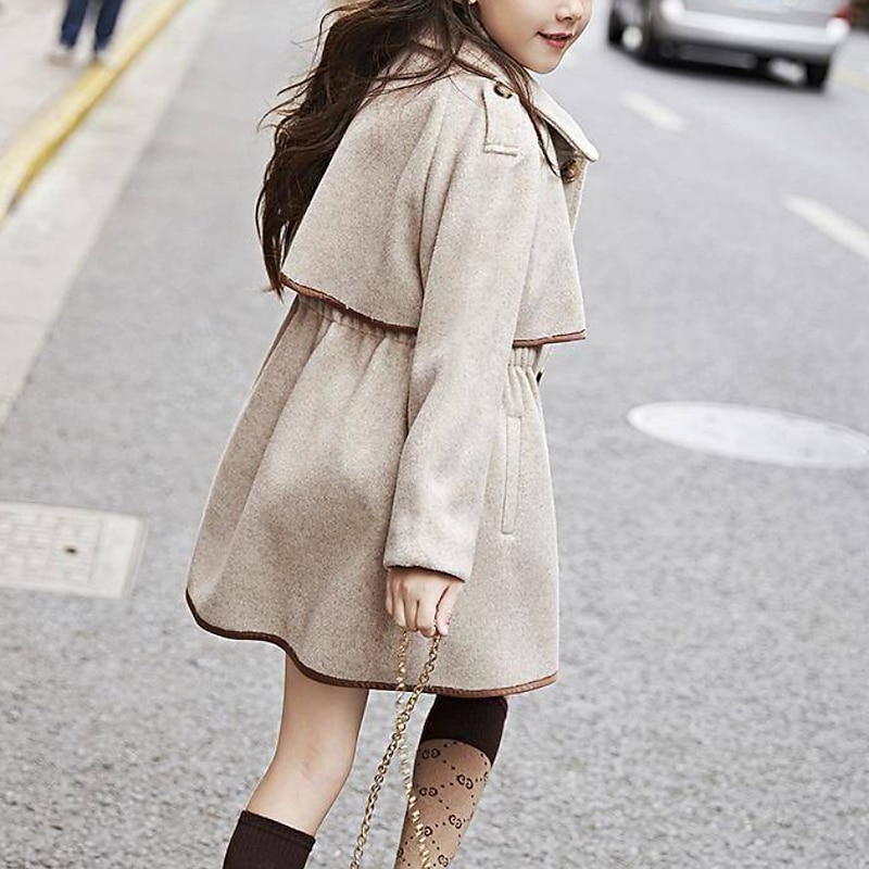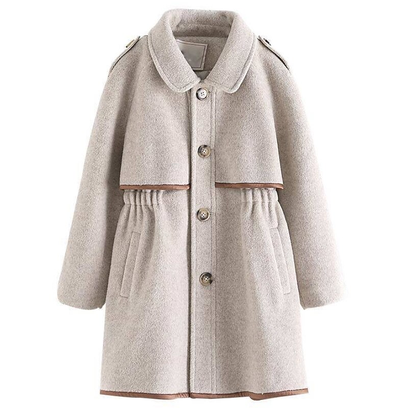 More information about Kids Girls' Woolen Coat Long Sleeve off white Solid Color Spring Fall Active School 7-13 Years