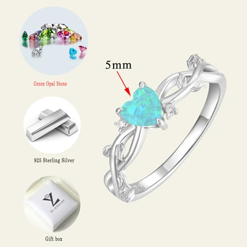 YL 925 Sterling Silver Engagement Rings 5MM Heart Cut Gemstone Infinity Band Leaf Jewelry for Women 6