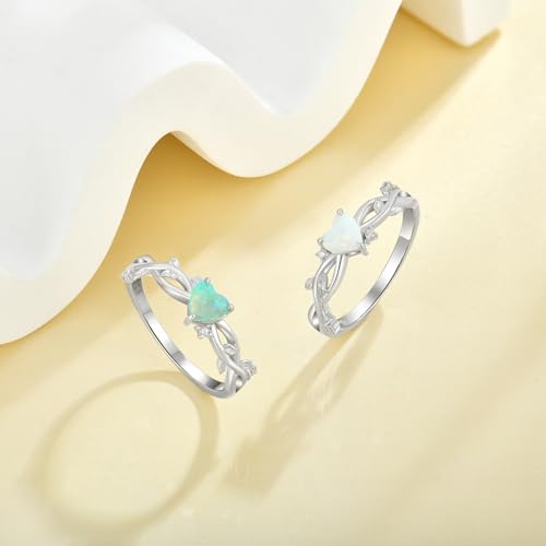• Birthstone: Set with 5mm heart-cut created white opal
