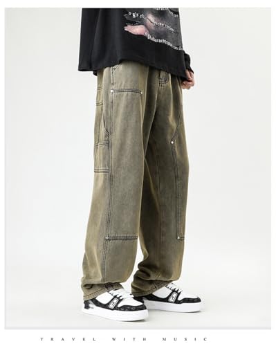 Jeans Pants Trousers Denim Spring Washed Vintage Blue Men's High Street Loose Straight Tube Large