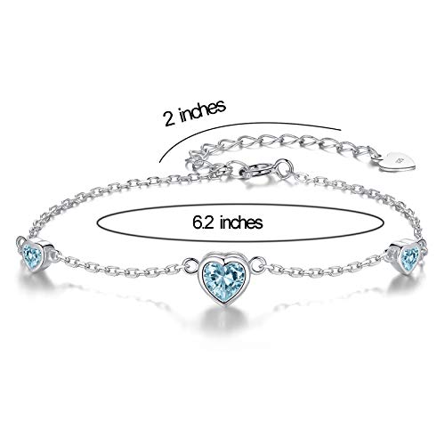 925 Sterling Silver Birthstone Bracelet for Women - Pretty Adjustable Heart Infinity Charm bracelets for Mother Daughter Sisters Bestie - Mother's Day Christmas Anniversary Birthday Gift Jewelry 7