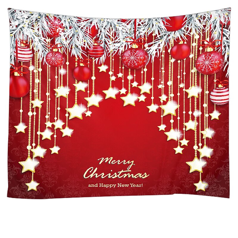 Christmas Decorations Santa Claus Wall Tapestry Xmas Photography Background Art Decor Hanging Home Bedroom Living Room Dorm Decoration Merry Star Ball Happy New Year