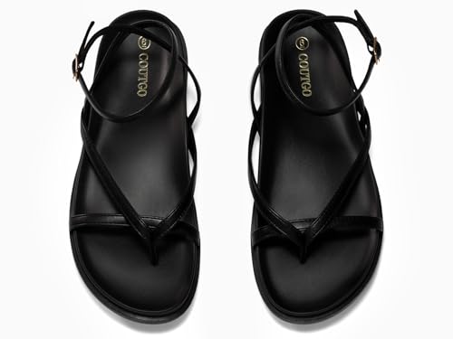 Coutgo Womens Strappy Flat Sandals Comfortable Flip Flop Footbed Sandals Ankle Strap Summer Beach Shoes 5