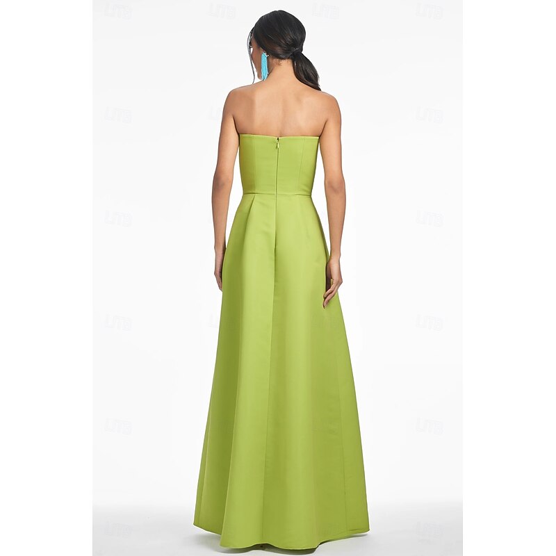 Floral A-Line Evening Gown Elegant Dress Formal Wedding Floor Length Sleeveless Strapless Satin Wedding Guest Dress 3