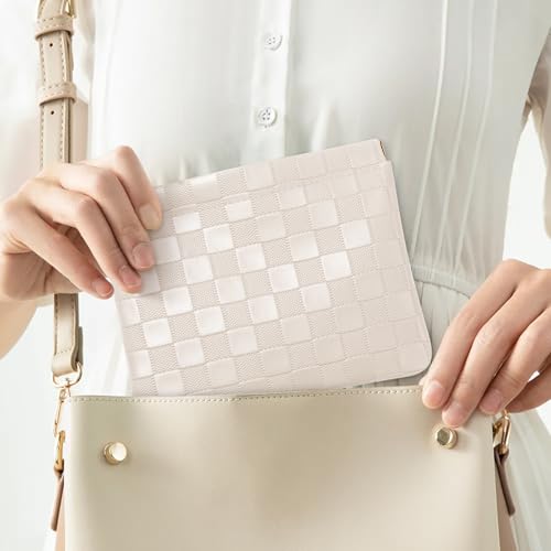HOT ! Sightor 2PCS Pocket Cosmetic Bag for Purse, Checkered Makeup Bag Portable Leather Cosmetic Bag for Women, Coin Purse Lipstick Cosmetic Accessories Organizer Travel Cosmetic Pouch (Black, Beige, L)