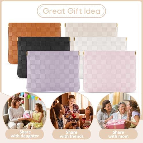 Sightor 2PCS Pocket Cosmetic Bag for Purse, Checkered Makeup Bag Portable Leather Cosmetic Bag for Women, Coin Purse Lipstick Cosmetic Accessories Organizer Travel Cosmetic Pouch (Black, Beige, L) 5