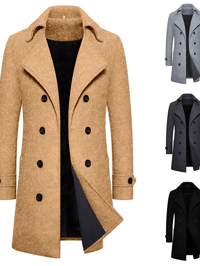 More information about Men's Winter Coat Overcoat Peacoat Long Trench Coat Outdoor Daily Wear Fall & Winter 95% polyester 5% cotton Warm Outerwear Clothing Apparel Fashion Streetwear Plain Lapel Double Breasted