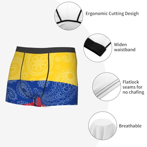 HOT ! Colombian Paisley Flag Men'S Boxer Underwear, Dry High-Performance Underwear, Breathable Elastic Sports Boxer Shorts