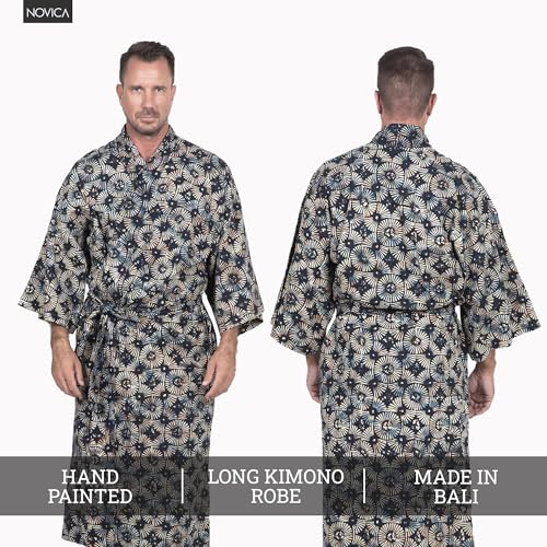HOT ! NOVICA Blue Men's Cotton Batik Robe, Midnight Fireworks' (One Size Fits Most)