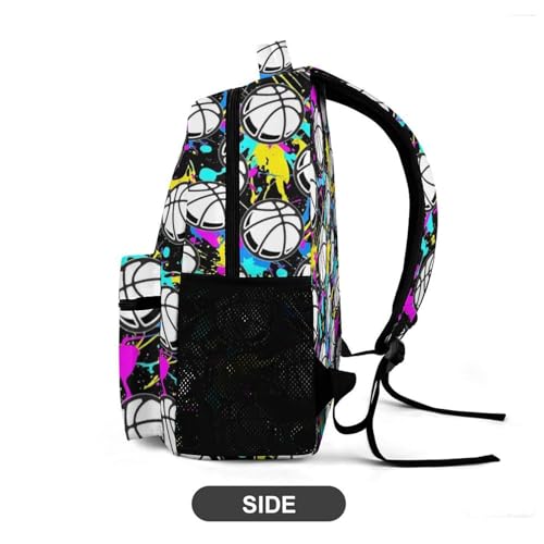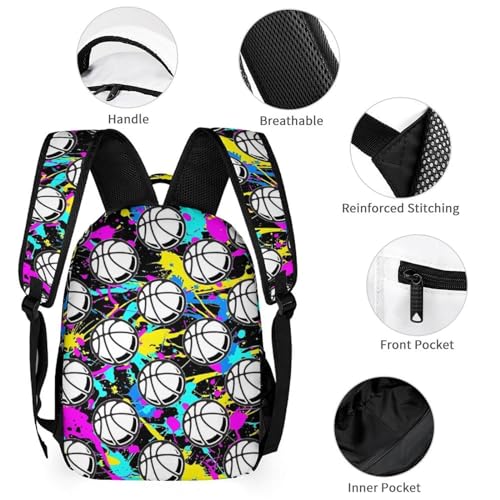 Basketball Backpack for Kids Girls Boys School, 16 Inches Cool Basketballs Theme Bookbag, Adjustable, Durable, Lightweight, Large Capacity, Colorful 1