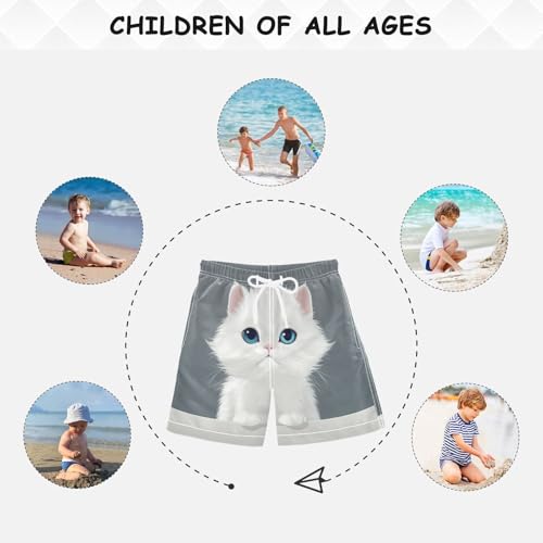 Pigsaly Boys' Swim Board Shorts White Cat Persian Kitty Boy's Swim Trunks Kids Swimwear M 4