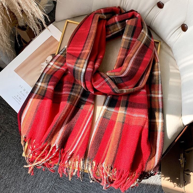 Highlights Elevate your look with this chic and stylish women's red plaid rectangle scarf. Perfect for adding a pop of color and pattern to any outfit. Perfect for all occasions!