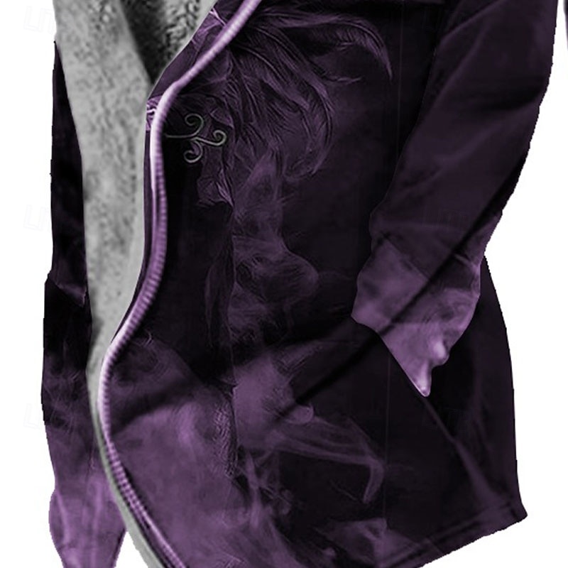 More information about Men's Winter Coat Fleece Jacket Jacket Daily Wear Vacation Fleece Lining With Pockets Print Front Pocket Fall & Winter Cross Streetwear Sport Hoodie Regular Blue Red Purple Brown Green Jacket