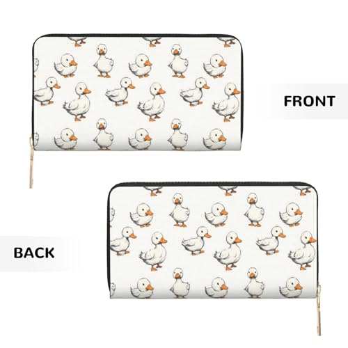 Leather Thin Slim Wallets for Women & Men - Cute Sketch Duck Print Card Wallet Holder with Zipper 4
