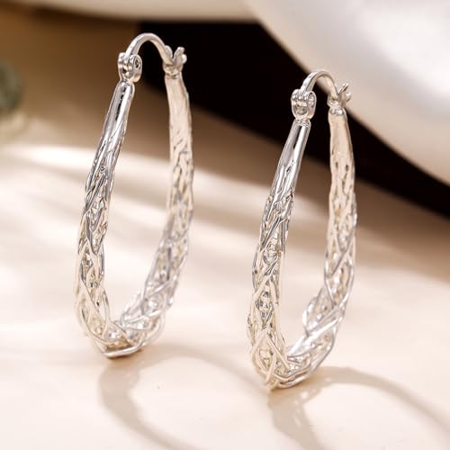 • Exquisite Silver Oval Hoop Earrings: The silver earrings are oval hoop earrings, with the inner tubes done in a fine diamond cut process, and then wrapped around the outside with fine tubes, which is very unique and superb. Intricate craftsmanship adds to the eye-catching silver earrings for women hoops. The lightweight design ensures a comfortable fit, while the sturdy construction ensures long-lasting durability. Our Oval silver hoop earrings are the perfect accessory to make a statement!