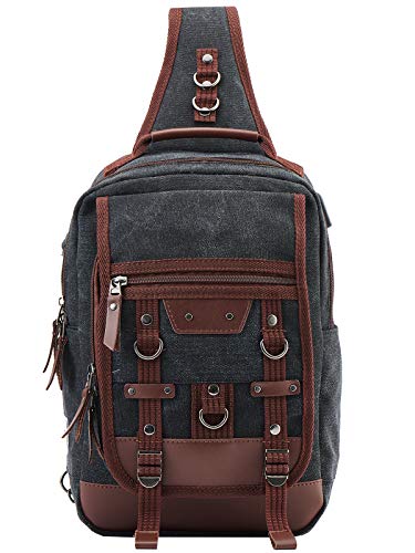 • -DIMENSION: 13.7”H * 9.4”W * 4.7”D,cuold fit 13in laptop easily. This Canvas sling bag men also lightweight,1.67lbs, adjustable shoulder straps’ length 29.9-37.4 inch, great unisex design for women & men & boyfriend, husband, father and son.This product is not available for children under 12 years old
