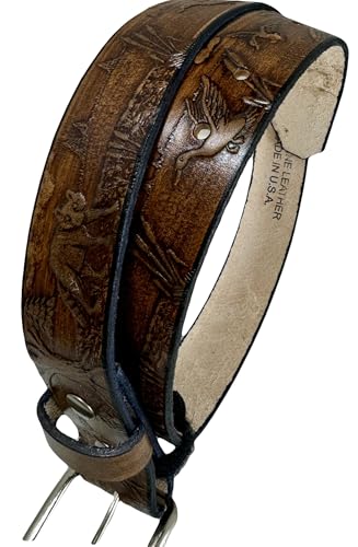 More information about Duck Raccoon Design Handmade Mens Leather Belt Western Work Casual 1.5"