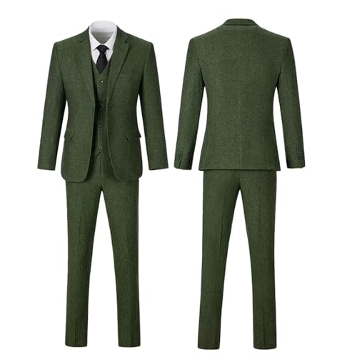 HOT ! Retro 3 Piece Tweed Men's Suit Wool Blend Formal Suit Blazer Vest Pants Tuxedo Set