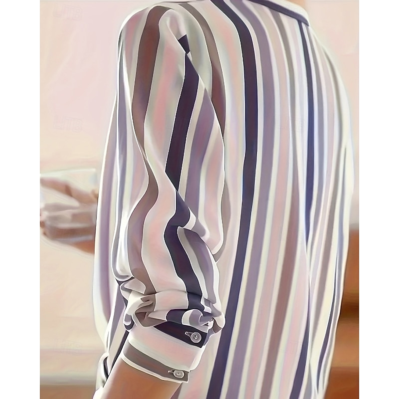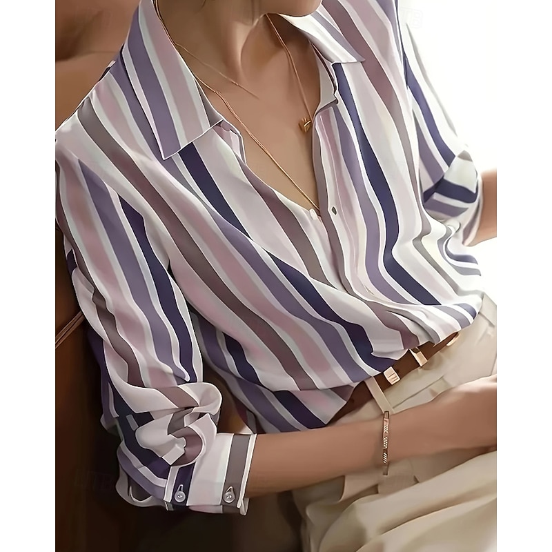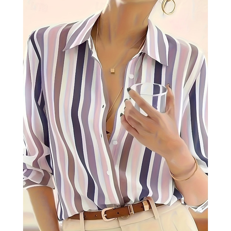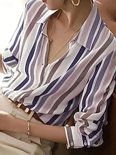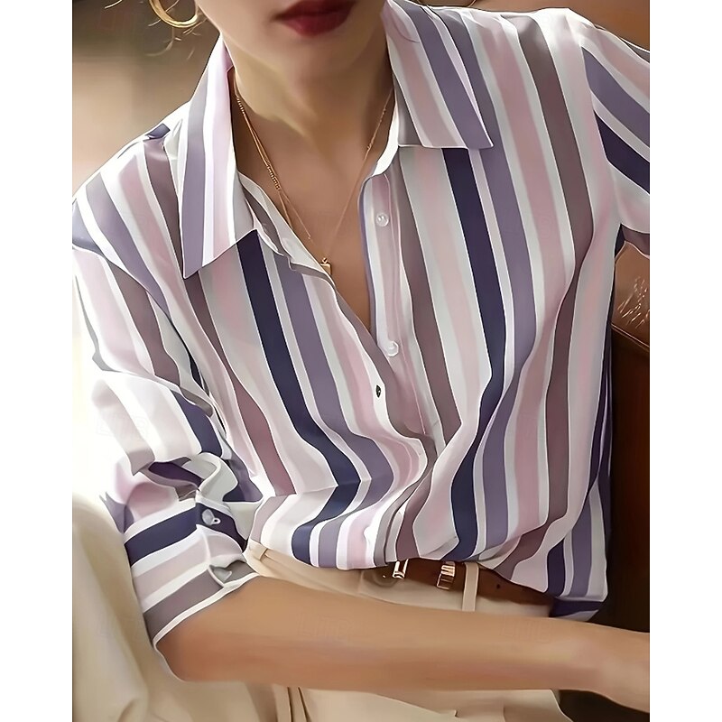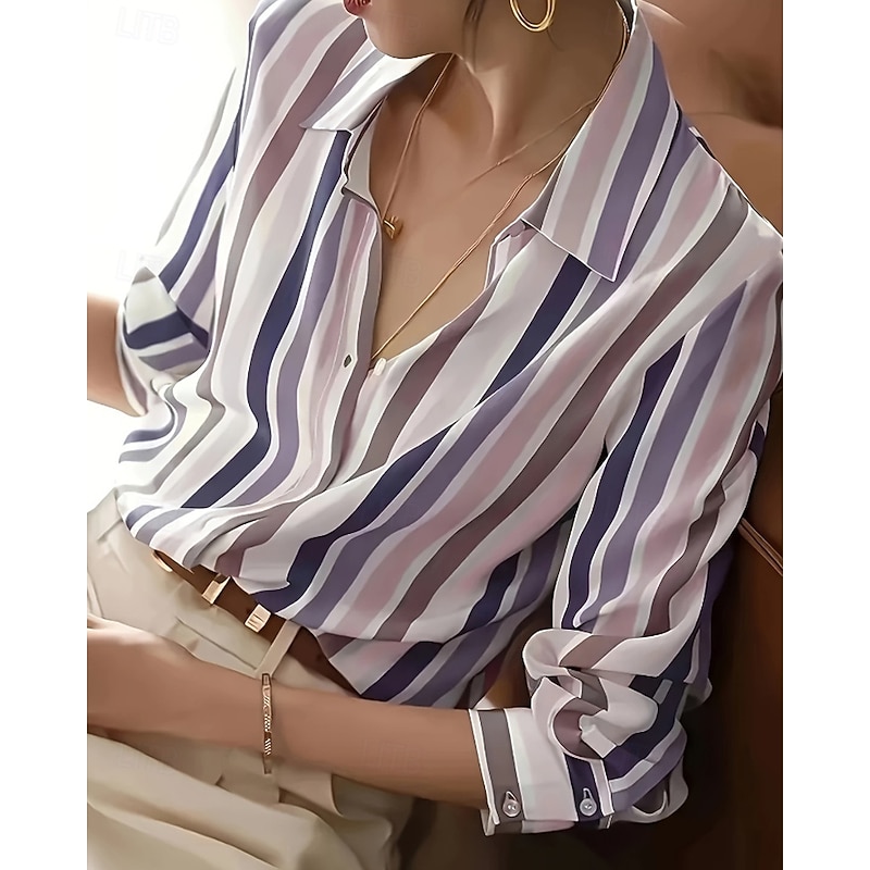 More information about Women's Shirt Blouse Striped Modern Casual Long Sleeve Shirt Collar Regular Tops Daily Holiday Going out Print Purple Brown Fall