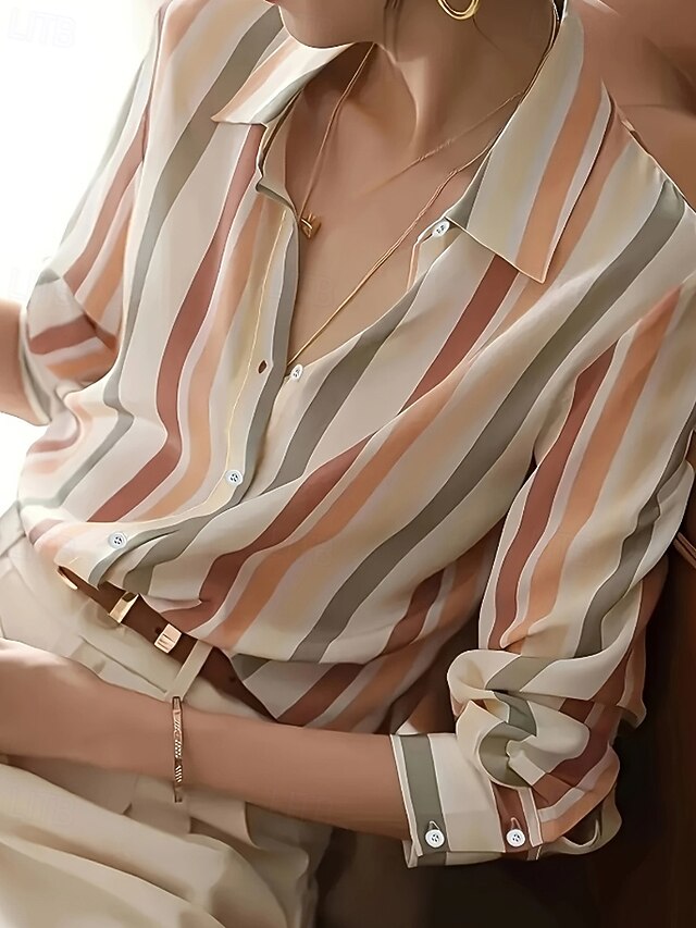 Women's Shirt Blouse Striped Modern Casual Long Sleeve Shirt Collar Regular Tops Daily Holiday Going out Print Purple Brown Fall 10