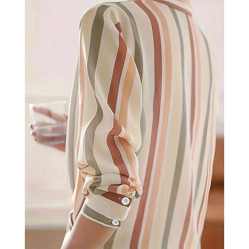 Women's Shirt Blouse Striped Modern Casual Long Sleeve Shirt Collar Regular Tops Daily Holiday Going out Print Purple Brown Fall 6