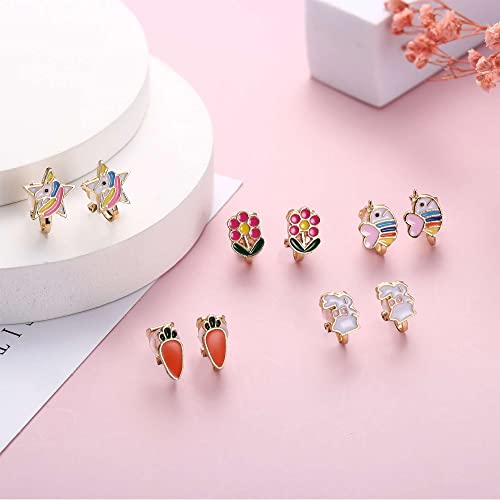 • [Multiple Styles & Various Colors] The animal flower clip on earrings for girls contains 28 pairs earrings in different styles and colors, such as rainbow, unicorns, cherry, mermaid, butterfly and more. Assorted styles and colors provide you with more matching options