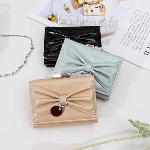 HOT ! Wallet Women, Bow Trifold Wallets, Small Cute Coin Purse for Woman, Coquette Credit Card Holder and Cash Bag for Ladies (Black)