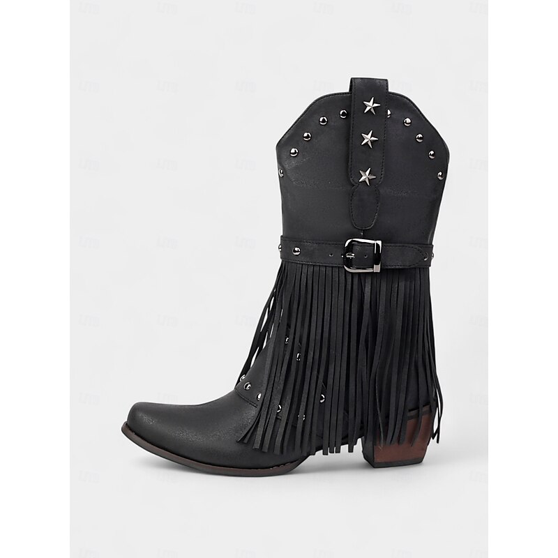 Highlights - Premium quality leather and PU used for upper materials - Textile lining for comfort and breathability - Stylish tassel embellishment adds a trendy touch - Chunky heel for added stability and style - Square toe shape for a modern look - Durable rubber outsole for long-lasting wear - 2024 trend: Cowboy Boots - Perfect for those looking to stay on-trend with a touch of Western flair