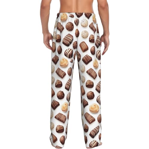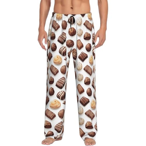 HOT ! Mens Pajama Pants - Bright Chocolate Print Soft Sleep Lounge Pants For Men, Casual Pj Bottoms With Pockets