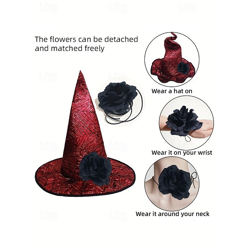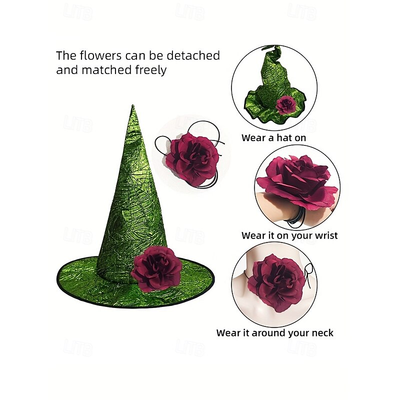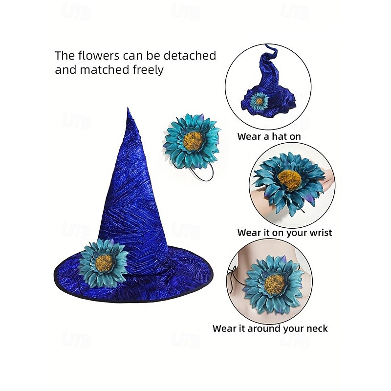 $18.99 - Women's Halloween Witch Hat – Foldable Colorful Pointed Hat with Flower Decoration for Costume Party, Cosplay and Festival Outfits 2025. Shop for cheap Halloween Accessories online? Buy at lightinthebox.com on sale today!