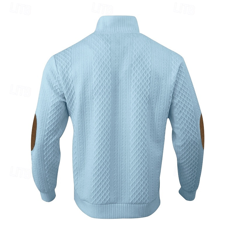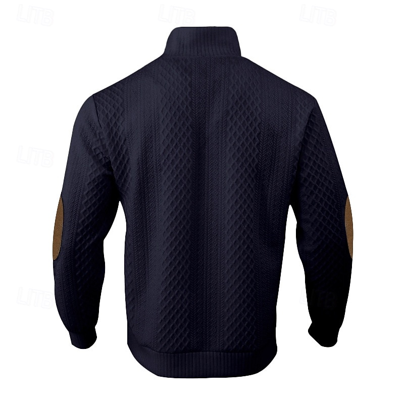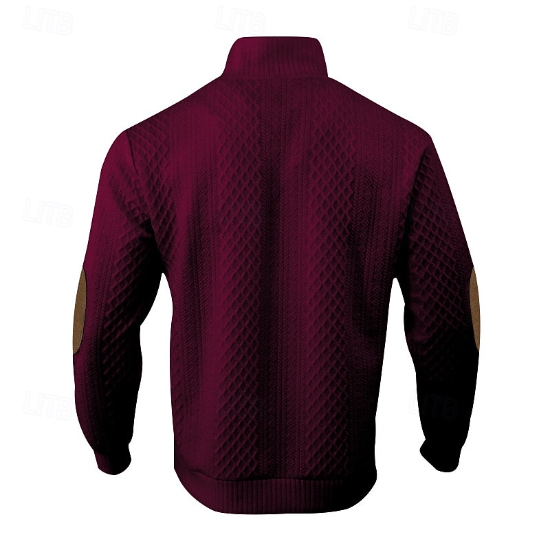 More information about Men's Sweatshirt Black White Army Green Red Navy Blue Standing Collar Color Block Jacquard Patchwork Ribbed Textured Sports & Outdoor Daily Holiday Polyester Streetwear Basic Casual Spring Autumn