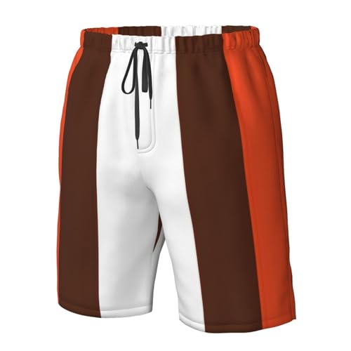 HOT ! Orange and White Stripe Print Men's Beach ofens Swim Trunks Shorts Quick Dry with Shorts Running, Surfing,Beach Sports