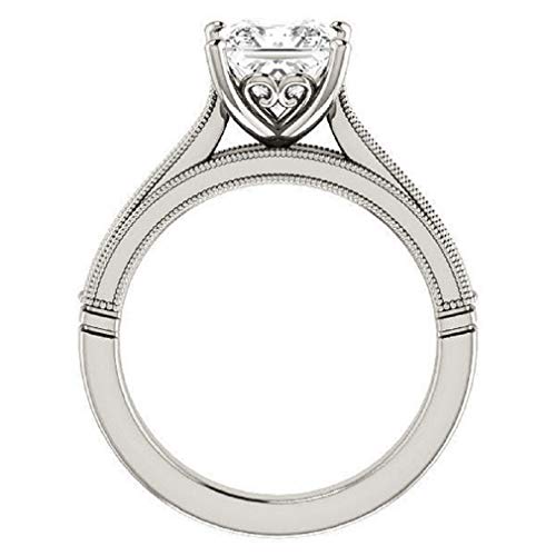 • Stone: Moissanite, Stone shape: Princess Brilliant Cut, Stone Color: Colorless, Stone Clarity: VVS1, Stone Luster: Excellent, Stone Weight: 3.05CT (8.0MM) Approx *** Description of Band:- Size: 3*3MM, Type: Handmade Set, Setting Type: Prong Setting