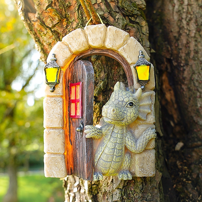 HOT ! Dinosaur Sculpture Wall Decoration Weatherproof Resin Statue Miniatures for Patio Yard Garden Wall Decoration Lovely Dragon Garden Ornaments