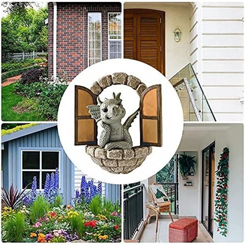 Dinosaur Sculpture Wall Decoration Weatherproof Resin Statue Miniatures for Patio Yard Garden Wall Decoration Lovely Dragon Garden Ornaments 4