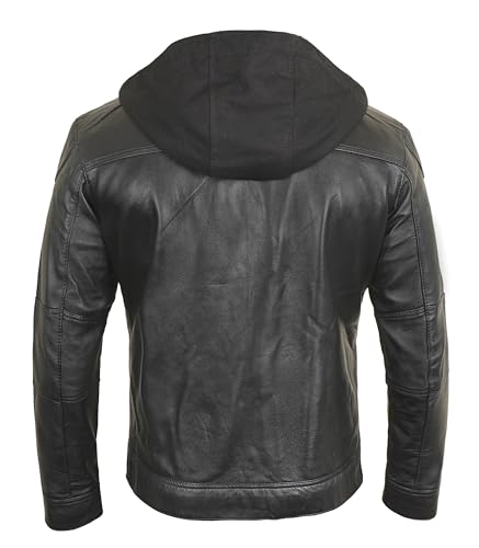 Mens Black Leather Jacket with Removable Hood - Real Lambskin Leather Motorcycle Jacket 7
