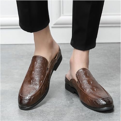 Men's Fashion Backless Loafers Genuine Leather Mule Shoes Leisure Anti Slip Patterned Breathable Mule Shoes 7