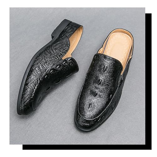 Men's Fashion Backless Loafers Genuine Leather Mule Shoes Leisure Anti Slip Patterned Breathable Mule Shoes 6