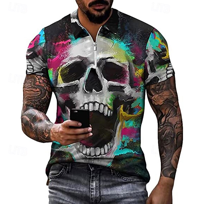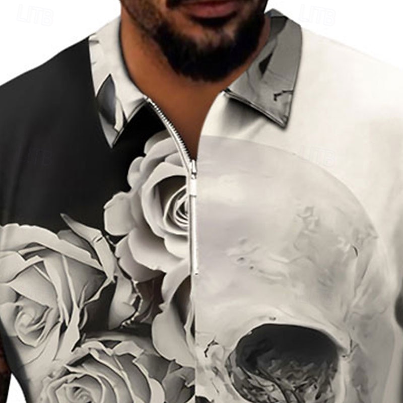$22.99 - Day of the Dead Men's Skull Rose Zip Polo Shirts Golf Shirt Short Sleeve Polo Shirts Collared Shirts Casual Horror Streetwear Festival Wear Party Outfits 3D Print Quarter Zip Polo White Purple Green 2025. Shop for cheap Halloween Polos online? Buy at lightinthebox.com on sale today!