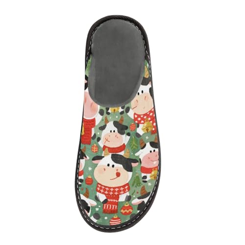 Slippers for Women Cute Cow Christmas Pattern Design Soft Fuzzy Women's Slippers Indoor and Outdoor Shoes 1
