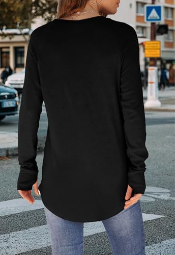 Womens Tunic Tops to Wear with Leggings Long Sleeve Thumb Hole Shirts Crew Neck Curved Hem 4