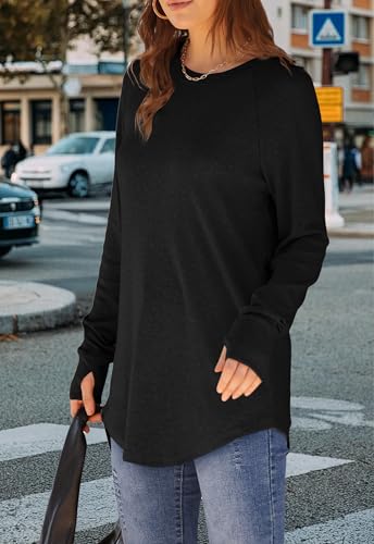 Womens Tunic Tops to Wear with Leggings Long Sleeve Thumb Hole Shirts Crew Neck Curved Hem 5