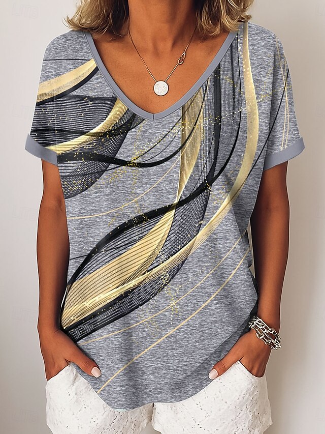 More information about Women's T Shirt Graphic Abstract Vintage Stylish Modern Short Sleeve V Neck Regular Tops Daily Weekend Vacation Wear Print Blue Purple Gold Green Summer