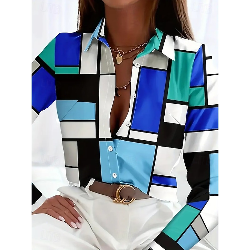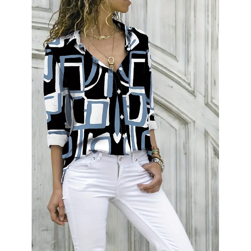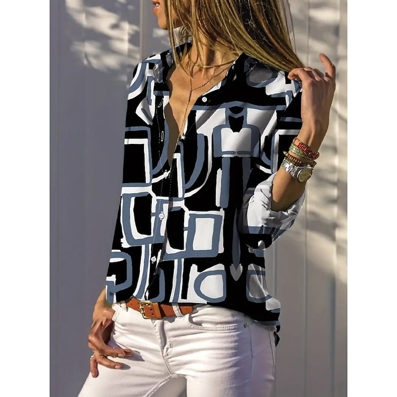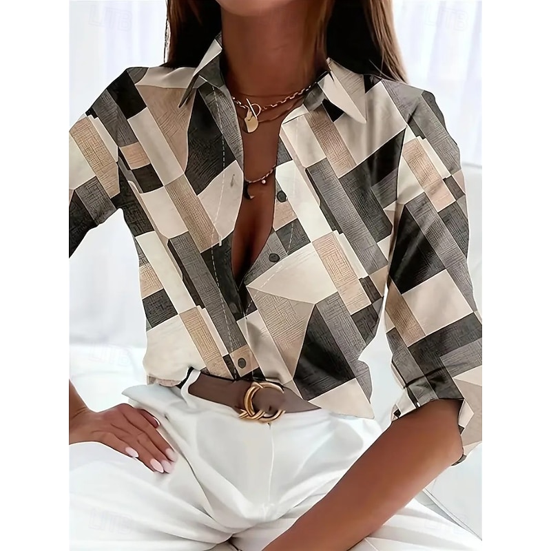 HOT ! Women's Shirt Blouse Plaid Polka Dot Casual Long Sleeve Shirt Collar Regular Tops Work Daily Buttons Print Black White Pink Blue Khaki Spring Fall Winter